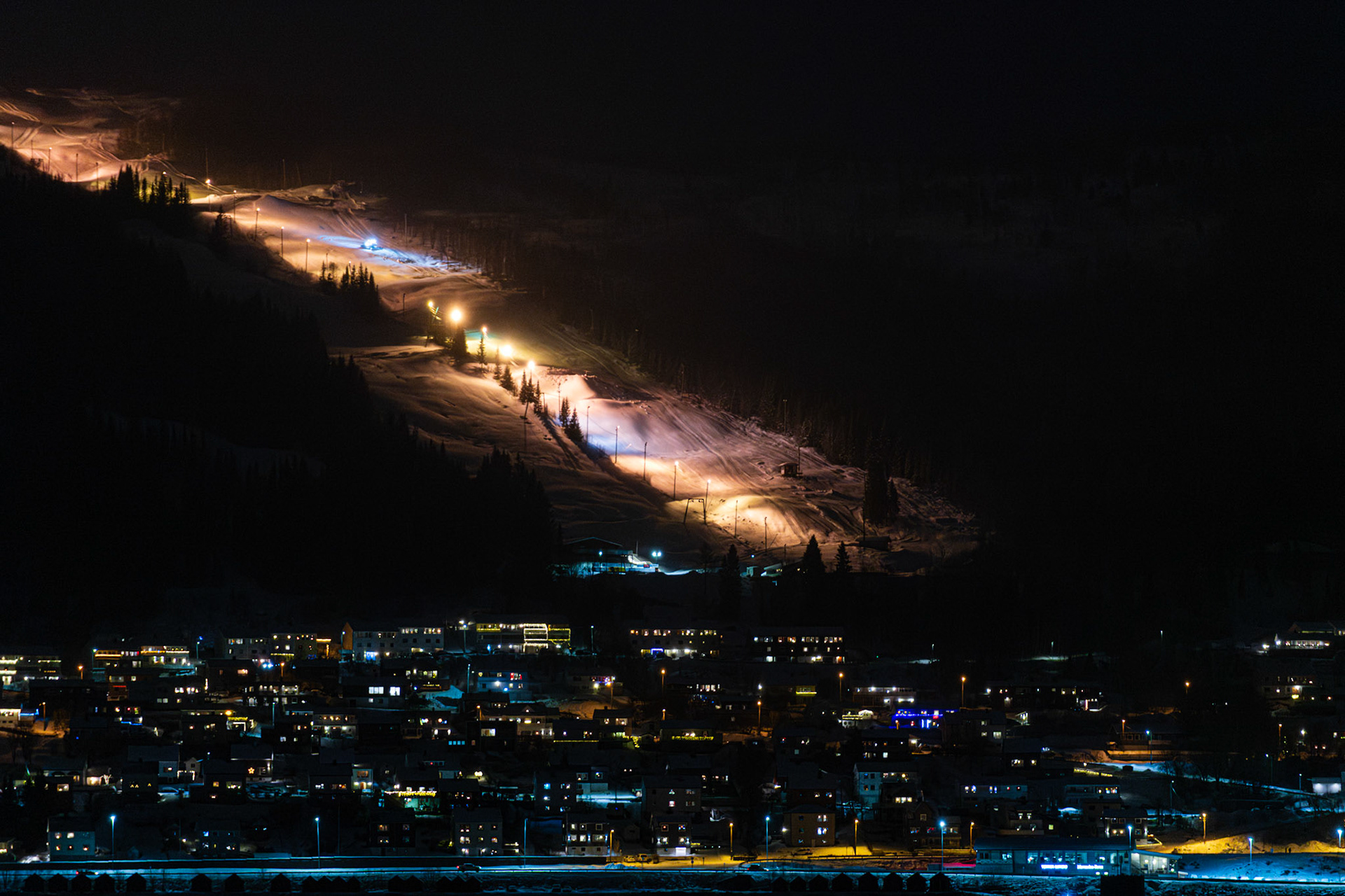 Narvik während der Polarnacht. Gegen 15 Uhr ist es schon stockdunkel. Trotzdem geht das Leben draussen weiter. Im Hafengebiet steht ein "Saunaschiff" direkt an den Grenzen der Stadt gibt es Skipisten. Zwar hat der Tourismus auch hier angezogen, aber die Infrastruktur für das Freiluftleben kommt anders als in der Schweiz in erster Linie den Einheimischen zu gute. So wundert es auch nicht, dass mitten durch Tromsö eine Loipe verläuft, die nach der Arbeit für ein wenig Bewegung an der frischen Luft genutzt wird.