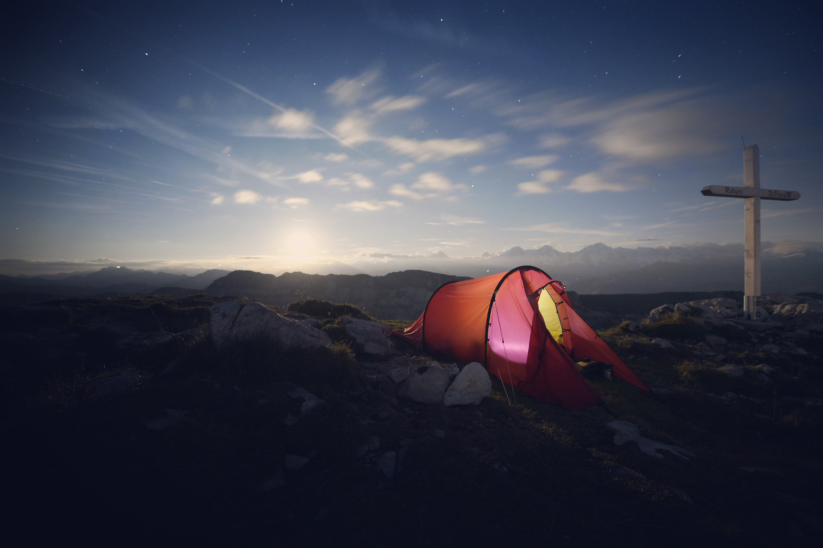 Zum ersten mal konnte ich meine neue DJI Mini 3 Drohne einsetzen. Die Bilder und Filme waren natürlich auf Grund der Perspektive und der freien Sicht auf diesen isolierten Gipfel extrem eindrücklich. Sie zeigen wunderbar, wie das Zelt exponiert in der Bergwelt steht - ganz jenseits eines normalen Zeltplatzes im Tal. Trotzdem bleibt die Drohne für mich eine Ergänzung - sie zeigt etwas, was man mit den eigenen Augen nie gesehen hat. Ich denke, eine Kamera - auf dem Stativ oder mit der Hand gehalten - erlaubt viel mehr einen Dialog mit der Bergwelt und den verschiedenen Lichtstimmungen zu beginnen.