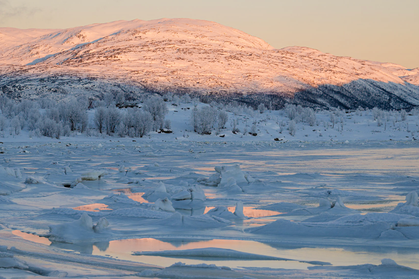 Mit dem Auto bin ich dann in der verbliebenen Zeit noch etwas in der Fjordregion nördlich von Tromsö herumgefahren. Fand einen alten Baum in der Nacht und viel Eis auf dem Wasser am Tag.