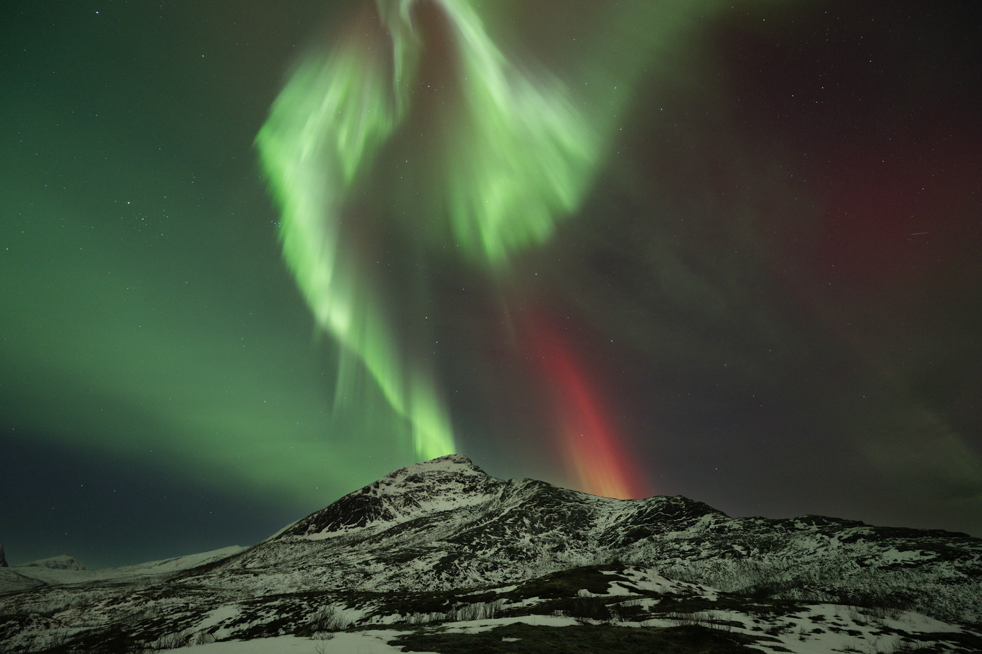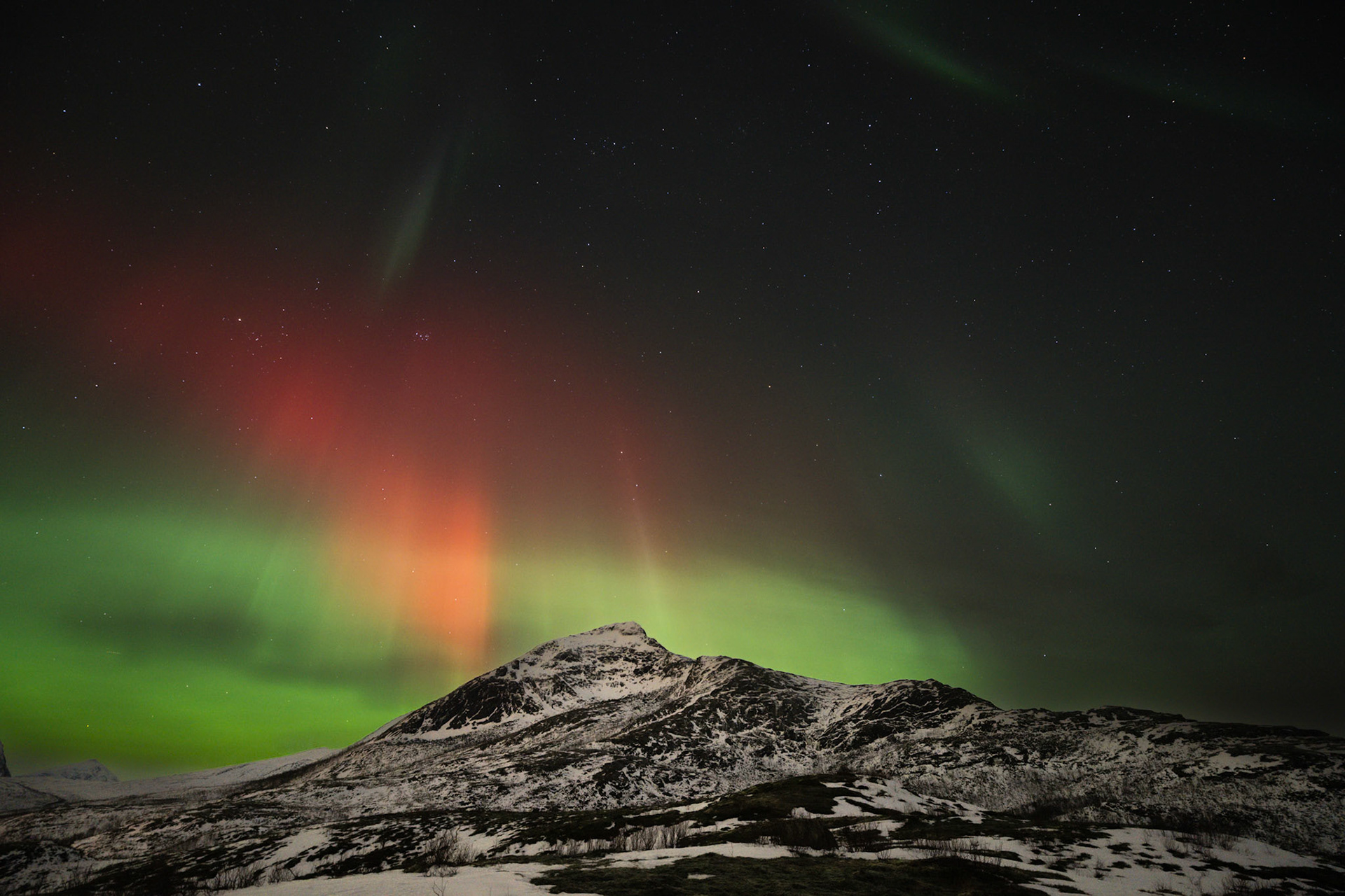 Hier verbrachte ich zweieinhalb Tage in vollständiger Ruhe und Einsamkeit. Man könnte meinen, dass es einem langweilig wird. Zum einen ist aber immer etwas zu tun - Equipment in Ordnung halten oder Schnee für den Kaffee schmelzen - zum anderen gibt es immer etwas neues, etwas spannendes zu beobachten. Das Licht verändert sich stetig, Wale spielen in der Bucht unterhalb des Zeltplatzes, vielleicht kommt noch ein Elch vorbei. Und in der Nacht: Nordlichter, Nordlichter, Nordlichter in allen Farben und Formen.