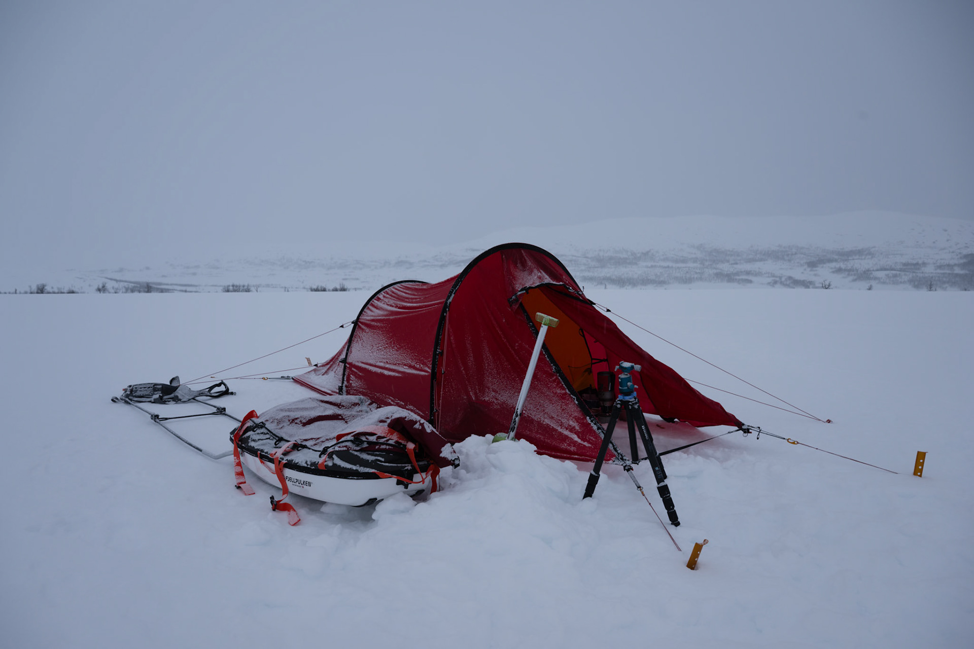 Am Ende des zweiten Tages erreiche ich den höchsten Punkt der Tour. Um mich herum: Nichts als Schnee, Eis und Weite. Keine Geräusche, keine Stimmen, keine Tierspuren. Sobald ich das Zelt aufgebaut habe, fühle ich mich an einem Ort zu Hause. Diese Weite war mir fast zu viel. Gigantisch schön aber auch unnahbar. Mein Zelt und ich ein Fremdkörper in dieser unberührten Landschaft.