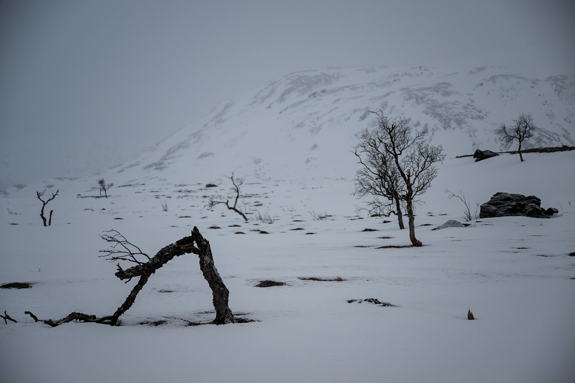 Der Morgen des nächsten Tages beginnt nicht verheissungsvoll. Was mache ich hier? So soll das Wetter die nächsten drei Tage bleiben. Die Perspektive: Zwei weitere Tage durch eine verhangene Landschaft marschieren - ohne wirkliches Ziel, denn ich muss sowieso zurück zum Start. Keine Unterhaltung aus dem Internet, da kein Empfang. Niemand da, um Gedanken auszutauschen. Zwei weitere Tage komplett mit mir allein. Marschieren und über das Leben nachdenken, im Zelt liegen und über das Leben nachdenken. Zu viel Grübeln ist gefährlich. Manchmal entsteht dadurch ein zu starker Sog nach unten.
